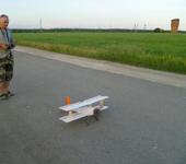 Всем принявшим обсуждения, и оказавших посильную помощь в реализации этого проекта огромное спасибо. На выходных сделал несколько полетов. Спешил в небо, так что фотографий процесса изготовления не делал. Фюзеляж склеил на болванке, два слоя подложки (оказалось очень легко, быстро и технологично), крылья обычным способом с одним лонжероном без нервюр (сосновая рейка + подложка). Своей работой доволен, самолет получился, кажется красивый вот фотографии.