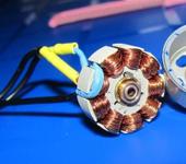 П.С. Мотор оказался с тонким железом-приятно. намотал звездой 16 витков в 5 жил по 0.15 мм окна в статоре уже были. Осталось закрепить нормально винт.