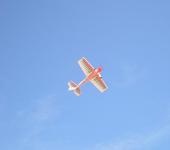 На этом самолете тренировать пиотаж можно только в штиль-большие рулевые поверхности и малый вес позволяют на малых скоростях выполнять фигуры в очень ограниченном секторе полета(например в парке у дома)При сильном ветре(для него это 4-5м/с)полет не стабилен,фигуры размазаные сильный снос по потоку,но надо отдать должное-очень устойчив к сваливанию!Резьюм-летать по штилям и получать удовольствие! И не большое ,но существенное дополнение-ввиду шершавой поверхности(структура EPP) имеем соответствующее обтекание набегающим потоком поэтому все посадки только на газу-где убрал там упал!