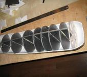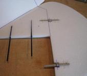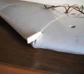 Бобышка с гайками для крепления крыла действительно приклеена только к “палубе”. Опыт эксплуатации предыдущих самоделок показал, что для штатных полетов прочность конструкции достаточна. А при нештатных ситуациях (падениях и кривых посадках) бобышка просто выламывает кусок палубы и крыло “отстегивается”. При этом крыло и обшивка фюзеляжа остаются целыми. Вклеиваю на место вырванный кусок по разлому и опять полный порядок, геометрия не страдает.