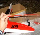 Оказывается у этого самолета съемное крыло - прятный сюрприз для меня. Руддер одевается легко на петли, вертикальный стаб держится на двух болтах. В комплекте 2 винта, 2 кока и инструмент, необходимый для сборки, а так же растяжки.