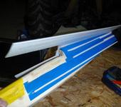 P.S. А центроплан усиливать не надо.Линейки за глаза. Можно ещё при сборке крыла на верхний и нижний торец лонжерона наклеить капроновые нити , а при склейке половинок крыла связать их между собой.Тогда и линейка не потребуется.Проверено лично.