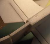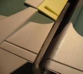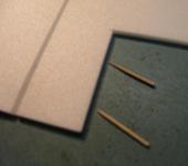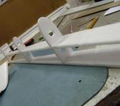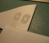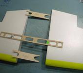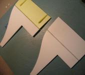 Собираю в кучу киль и элеватор.Сразу отрезаю и вклеиваю петли навески-модернизировал маленько. Для лучшего их сгибания прорезал отверстия. Все в сборе вкеливаю в фюзеляж