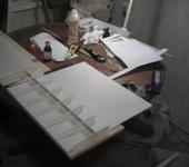 Ну и сам процесс, правильно вообще делаю? а то как всегда сначала все делается а потом инструкция читается, слева на лонжерон наклеил лист потолочки, потом задние нервюры приклеил, потом загнул, а потом передние вклеил… хотя получилось загнуть лучше чем справа… по фото если так посмотреть правильно все делаю?