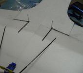 Линейки идут только до конца крыла, между ними вклеиваю перемычки, в прорезанный паз, к ним креплю крыло при помощи двух маленьких шурупов, все просто и доступно. На фотографии все видно, но там я ошибся с размером перемычек, а чтобы их не переделывать разрезал их по середине и сверху приклеил накладки.