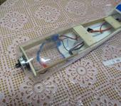с такой гениально-простой компановкой есть возможность и смысл прятать хвостовые сервы внутрь, ближе к центру масс, используя боудены для приводов РН и РВ.