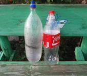 Сейчас использую только фен с точной регулировкой температуры. В пробку врезан обыкновенный штуцер для бескамерных шин (15 руб) без всякого герметика, просто внятяг. Внутреннее давление его само герметизирует. Бутылка равномерно проворачивается под струей фена, как только материал в этой зоне слегка поплыл.