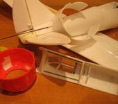 Попробовал согнуть обшивку крыла при помощи утюга. Поставил температуру на грани прилипания пенопласта к утюгу, гладил место сгиба минуты две и потом быстренько согнул через палку от швабры.
