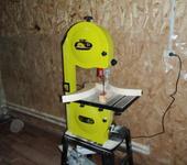 Давно мечтал купить ленточную пилу ( с ней рассчитываю по проще будет болваны делать) так что вот в сарайчике установил, жене сказал что без неё мебель для дачи не сделать, но сам то знаю для чего он мне нужен… И еще маленькую циркулярку и сабельную пилу на аккумуляторах брат подарил. Так что буду осваивать новый инструмент.