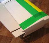 При сборке рулевые поверхности были сделаны однослойными, рули направления и высоты - оклеены скотчем. Рулевые машинки - HXT500 на хвосте, дешевые 4.5граммовые Turnigy - на элеронах. Последние очень не советую использовать - большой люфт и плохая точность отработки.