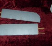[ATTACH][/ATTACH] заклеил, вставил бальзовые бобышки, обтянул стеклом 18гр.м2 на аквалаке. Вес - 50гр. эти два элемента. Да чуть не забыл. Размер планера делаю с размахом 1100. Стабилизатор и киль увеличил на 10% для лучшей управляемости. Размер продиктован наличием силовой установки и размерами транспортного средства.