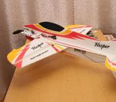 Ну вот - не прошло и пол года - облетал Hespera в зале .Всё понравилось - только потом добавлю тормозов и всё .Летал с акком 240 2S. Вес получился 193 гр. Время полёта 4,5 мин.