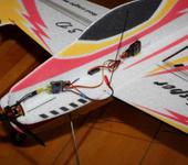 На элероны HXT 900. Двиг 2204-14 , рег на 10 ампер. Вес получился 175 гр. - без аккумулятора …тяжеловато для зала…но пока не облётывал - там посмотрим…
