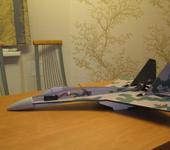 Пробовали импеллер на Ф-22 пенолоете, звук понравился, но тяги мало, на Су только пропеллеры, их и в полете не видно. Сейчас на Су (уже в 4 поколении, начиная с крестолета) ставим БАНО, в сумерках полетать попробуем, изменили стойки шасси (с повышенной амортизацией), крепление пиротехники. А так модель многим нравится, еще несколько моделистов начали их сборку, конвеер не останавливается.