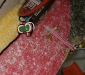 Она тоже обтянута скотчем и приклеена к костылю - все равно его надо будет менять, так что весной отрежу вместе с лыжей.
