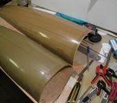 Я по-прежнему считаю оптимистическую технологию наиболее оптимальной (вот откуда пошло название 😉 ) для изготовления фюзеляжа пено-самолетов. Конструкция получается очень легкая и прочная, материалы можно применять дешевые и почти любые, ремонтопригодность – отличная. Этот этап постройки модели – один из моих любимых, потому что очень быстро дает визуальный результат. Первый вечер - выпилить шаблон из фанеры, вырезать полушпангоуты из пеноматериала и приклеить. В оставшееся время – почитать форумы. Второй вечер – сделать пару комплектов половинок фюзеляжа. Прихватываем половинки скотчем, включаем воображение и любуемся будущей моделью.