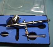 Это германский СОЛО ЭВОЛЮШЕН-диаметр дюзы 0,2мм. Я его применяю для особо тонких работ. Можно провести линию толщиной в 1мм. Не буду вас грузить техническими тонкостями, кому интересно найдите в интернете описание. Не подойдет к моему компрессору, поскольку это аппарат двойного действия - при нажатии на педальку открывает подачу воздуха, при перемещении её назад открывает подачу краски.Отпускаем педальку-воздух перекрываем…, а компрессор работает и …БАХ. Сразу могу сказать самолет им покрасит не удастся, а рисунок на ногтях сделать за милую душу.