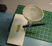 Удобно соблюдать пропорции набирая краску одноразовым шприцем.Объемом побольше.Или как вариант сделать метки на бутылочке. Внутрь емкости для краски я помещаю болтик из нержавейки-удобно перемешивать краску осевшую на дне. Иногда я использую для набора краски в аэрограф разовые пипетки. Это для совсем маленьких порций прямо в приемную трубку аэрографа. Еще неплохо купить в магазине для автокрасок липкие салфетки для удаления пыли и оверспрея с поверхности в процессе покраски. Ими аккуратно не особо нажимая протирается поверхность перед покраской.