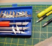 Я использую покупные ножи со сменными лезвиями. Раньше был фанатом самодельных. Но появилось в продаже много сменных лезвий и дешевых, уже не хочется отрываться постоянно и подтачивать лезвие, проще заменить его. Но все равно держу на столе шкурку “нулевку” и иногда подправляю. Хорошие ножи выпускает фирма ОЛФА. На фото это маленький круглый желтенький при покупке нужно выбирать металлический зажим лезвия (есть варианты с пластиковыми)-они совсем не держат.