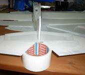 Обклеил крылышко скотчем . Навесил элероны .В процессе постройки решил сделать ценроплан с лонжероном из бальзы.