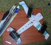 Взял нарезку у друга из 8мм ЕПП.Размах 800.Двигатель 2205 на 1400об сервы элероны 1шт 9гр и две по 6гр на элеватор и рудер.Винт 9/4,7.Аки две банки 450 35с.Красил из балончиков спрей BOSNY
