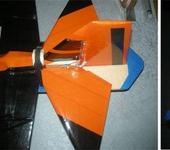 Немного ещё продвинулось строительство: вырезал элероны и врезал сервы в крылья, удлинил все провода серв, прорезал отсек под АКБ на 3S1P 2200.