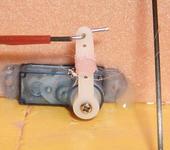 Удлинил качалки серв. Чтобы не мучиться с поиском материала для удлинителя, использовал качалки из комплекта серв - их накопилась целая куча. Откусывал лишее кусачками, немного обрабатывал наждачкой, затем на циакрин, пришивал ниткой и нитку тоже пропитывал циакрином. Вот так: