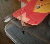 Продолжу про постройку. Подключаем рули. На этот раз решил сделать кабанчики из пены. А шарниры на них- из термоусадки. На качалках оставил привычные S-коннекторы. Тяги - из угля то ли 1,2, то ли 1,5 мм. Для длинных тяг предусмотрены промежуточные направляющие тоже из пены. Отверстие прокалывал прямо тягой.