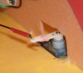 Затем циакрином приклеиваем кусочек к кабанчику и капаем активатором. Все! половина соединений готова! Остается подключить тягу к качалке. Тут нужен сервотестер или приемник с передатчиком, который будет работать с этой моделью. Я лично предпочитаю хороший сервотестер, у меня GWS-вский. Ставим центр на серве при помощи сервотестера. Надеваем качалку. Вставляем наконечник тяги (у меня - из канцелярской скрепки), надеваем термоусадку. Руль - в нейтральное положение. Подкладываем кусок чего-нибудь слабогорючего между наконечником и пеной и усаживаем термоусадку. Я это делаю зажигалкой 😃 Главное, чтобы огонь не попал на пену - прожжет!