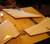 А вышло вот,что…Теперь обрабатывать,обклеивать скотчем и вклеивать крылья с килем…ставитьсервы,кабанчики, тяги и т.д.