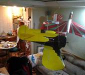 Тягу мерил электронным безменом на земле. Зацепил за хвост и дал полный газ. Получил реальные 1200гр. тяги. Так что есть вероятность что полетит. Коэф тяги 0.8 на мой взгляд не плохо для пилотажки. А взлетать скорее всего буду с рук или с катапульты(если никто не поможет). Хуже дела с посадкой обстоят. 100% кувырок через капот будет. ВПП нету, сажать придется в снег, повезет колеса не отлетят 😃