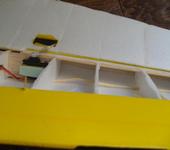 Для тех кто когда нибудь решит повторить. Были доработаны (усилены) задние кромки в местах вклейки навесов, путем приклеивания на эпоксидку к нервюрам и к задней кромки стеклотексталитовых пластин, т.к. в процессе эксплуатации их провернуло от нагрузок. Усиления пока сделаны на крыльях и киле. Стаб пока держится.