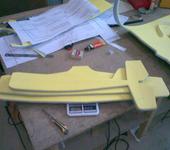 Для полного эксперимента решил кроме нового для себя матерала еще и изменить немного в чертеже. Решено было оперение делать в одной плоскости. Итак сегодня нарезал материал. Вес получился 221 грамм. Многовато, придется как то уменьшать.