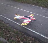 Облетал 😁😇,ничего так моделькаB-)😎,с центровкой 120мм. при потери скорости нос опускает,центровку можно двигать назад,при маленькой скорости на крыло не заваливается,можно пешком ходить😒,и это с акком на 1300mAh 3S 45C(нанотек,при зарядке из режима сторадж вливается 780mAh)слетал три акка😁;на взлёте есть неприятный момент-если газульку в пол то модель"скручивает"в момент отрыва:),если на 75%то нормально😇,пару щелчков триммернул по РВ и элеронам,летал за школой(школьный стадион)😈,сегодня впервые попал под проп-ощющения не из приятных😵,порезало два пальца левой руки,хорошо что рядом с домом;),сбегал перевязался и снова в бой.😈