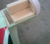 После этого сделал болванку на дсп, наклеил пеноплекс и обрезал струной по шаблону. Но в этот момент у себя на “складе” нашел ранее купленную подложку под ламинат та что зеленая и все в корне поменялось. Тут же начал эксперимент с подложкой. Нравится то что размер у нее 100х50см причем их 2 штуки и они непрорезаны до конца.