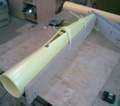 Начал делать крыло с нервюрами, то ли торопился, то ли вдохновения не было, короче говоря дело не шло. А по планам нужно было крыло заложить. Отложил, точнее сказать отбросил в сторону испорченные нервюры и тут же переделал на продольные лонжероны, усиление сделал из абаша, остальное потолочка с ниткой по торцам, где будет отрезаться элерон проложил пеноплекс.