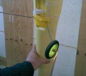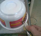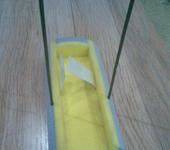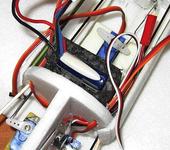 Вклеил в отсек шасси, липучку. Из майонезной банки вырезал усиление снизу, через него будет проходить проволочное шасси, оно обеспечивает жесткость конструкции в месте выхода из фюза. Приклеивается на тонкий двухсторонний скотч. Тем самым получилась жесткая, достаточно гибкая система, да и еще с аккумуляторным отсеком. Получил выигрыш в весе 25 грамм, по сравнению с прошлой конструкцией.