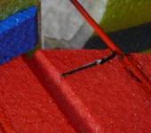 Далее некоторые этапы не фотографировались. Приклеил бока к фюзеляжу так же прижимая сверху книгами, в крыле сделал прорези сверху и снизу и вклеил карбоновые стержни. Крыло стало очень жестким. Вклеил в крыло рулевую машинку для элеронов. Покрасил снизу крыло и стабилизатор красной автомобильной краской из баллончика. Тонкий стабилизатор от этого слегка покоробился, но после высыхания краски и под давлением литературы вернулся в первоначальное состояние. Ошибка была в том, что я не оставил белых полос. Издалека верх и низ самолёта плохо различимы, так как довольно близки по цвету. Теперь думаю сделать чёрные полосы. Красный цвет уже ничем не перебить.