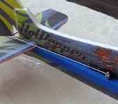 После нескольких полетов хвост пришлось усилить. Сначала вклеить стержень снизу - вырывало нижнюю петлю, если цепляешь хвостом на взлете. По этой же причине увеличил длинну костыля до 5см. Потом пришлось вклеить еще один стержень в продолжение кабанчика - в этом месте руль тоже надломился.