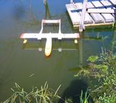 Вот так это должно быть! Примерка. Но будет все по другому… Подкинул мне идейку Вадим Руденко…Поднять мотогандолы на крылья и поплавки приделать. Пойду делать шасси. Примерка поплавков и РВ. Очень симпатичненький самолетик -амфибия. Но шасси я хочу оставить, как у летающих лодок. Ну, уж раз амфибия значит нужно делать редан. Я не стал срезать часть фюза и приклеил снизу необходимой толщины пенопласт. После просушки уберу все лишне и обклею скотчем. Пока выглядит так (заклеен технологическим скотчем). Примерил капоты на моторы, сделаны из крышек от пены для бритья. Нужно прорезать щели для охлаждения… Пересмотрел свое намерение по поводу шасси. Я пришел к выводу , что шасси (как у летающей лодки) если их не сделать убирающимися, будут мешать модели при взлете, поэтому решил их сделать съемными, использовать при взлетах с земли. А при взлете с воды будут устанавливаться дополнительные РН , опущенные в воду (на обоих килях). "Послушный "- “Доцайл” кусается! При доводке хвостового оперения порезал большой палец левой руки, теперь работа затормозится. Авиамоделисты присылают мне свои импровизации на эту тему. Много интересного… И даже видео…