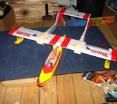 Мне , конечно далеко до такой модели, но я думаю, что мой Доцайл - Послушный получится не хуже. Пора сказать несколько слов о “начинке” модели. Моторы бесколлекторные Outrunner hexTronik 1500kv 24gram.-2 штуки. ( по паспорту тяга 400 г. каждый )Регуляторы HobbyKing Red Brick 20A ESC -2 штуки. Сервомашинки HXT 900-5штук.Аккумулятор Turnigy 1300mah 3S 25C Lipo Pack. Винты 7060SF (разнонаправленные) или 5х5 правого вращения. Миксер Turnigy V-Tail Миксер. Все комплектующие преобретены в магазине Паркфлаер, последнюю посылку только получил.(29.04. 2013). Электроника уже опробована на других моделях. Вес модели еще не определен. Ориентировачно 500-600 г. Первые испытания плавучести на воде… Глубина погружения 1,5-2 см.