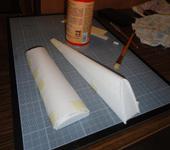 Продолжаю.Все детали кроме капота и элеронов,шасси весят 199г.крышку сделал с магнитным креплением.Неожиданно узнал,что шариковая пена упаковочная,отлично обрабатывается шкуркой наждаком.Сделал из нее законцовки.Вес консоли 47 гр.