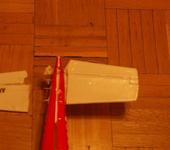 Я сначала ливанул циакрину, эта сволочь съела дофига пенопласта, честно говоря вот немогу вспомнить чем клеил, у меня тогда из всех клеев был тока ПВА, но сейчас уже эта половинка легко снимается и насаивается обратно на палочку из под мороженного, причем держится довольно крепко, не слетает в полете. А палочки к самому рулю которые две половинки соединяют клеил циакрином, там на рулях сверху какаято пленка из пластика или чегото такого, ее не разъедает циакрин. Щас я уже опытный и клею UHU por’ом