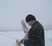 Сделал пред полетную проверку. Проверил рули. Реверснул один канал – повороты. Проверил баланс. Все ок. Хотел побегать с самолетом проверить его качества планирования – но не вышло – мала скорость бегуна . Не решился пускать с руки. Потом после полета – когда поднялся ветер – я пустил его против ветра – и он зависал на 1- 2 секунда надо мной – я его ловил. Понял, что с планированием/балансом – все ок. Я не придал этому значения – но сейчас, когда пишу - понял, что самолет немного заваливался направо.Полоса готова – расчищена – метров 10. Ставлю самолет, включаю передатчик, подключаю бортовой акк., запускаю двигатель. Хочу потренироваться с вождением на взлетной полосе. Лыжи не дают того скольжения которое мне нужно. Поставил самолет на тропинку – там снег укатанный – намного лучше. Ставлю на лед – плоховато скользит, хотя разгоняется. Видимо металл не дает хорошего скольжения – надо делать пластик! На рыхлом снеге стоит на месте и только клюет носам на повышенных оборотах. Значит либо лыжи не работают в моем случае, либо надо менять конструкцию (пластик).