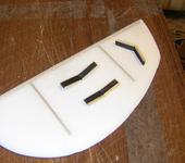 - Наклеиваем шпангоуты на один бок фюзеляжа. Затем протягиваем стрингеры между шпангоутами.