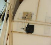 Причем, первая же пробежка привела к выходу рулевой сервы из строя (Hitec HS-81): слишком большая инерция у хвоста, сильно заносило и серва не выдержала. В итоге немного видоизменил форму задней стойки (уменьшил плечо колеса) и поставил мощную стандартную серву с металлическим редуктором.