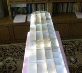 Захотел – сделал. Технологии классические: потолочка, деревянные линейки, немного фанера. Как всегда, чертеж был разбит на листы А4 и распечатан с помощью утилиты PosteRazor, которая умеет разбивать большую картинку на листы и печатать их по отдельности. Для удобства склейки кусков, на чертёж предварительно была нанесена сетка, чтобы удобно было совмещать края листов.