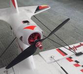 Самолет в целом отличный, но на больших углах атаки винт теряет тягу из-за турбулентности за спиной. В штопор срывается принудительно и выходит из штопора легко. Устойчив на посадке, взлет с рук беспроблемный. Винт родной вполне оптимален, 6х4 или 7х5 около 900-950 тяга.