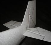 На консолях из 1,5 мм карбона, на оперение из 0,8 мм стальной проволоки.