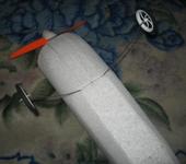 Ну и попробовал сделать кок из обрезков 6 мм ЕРР. Склеил набор из девяти слоев и с помощью небольшого приспособления с куском нихромовой проволоки и блока питания вырезал. На фото кок на мотоустановке.